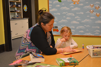 We are fortunate to have a willing teacher – Judy Pfitzer, to teach the morning classes. Each week the children are taught Bible lessons and entertained with coloring and crafts.