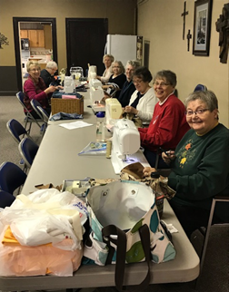 The busy sewing ladies of the church (and some other local helpers) meet in the months of November thru March on designated Thursdays (when we are not in pandemic mode). They are a busy bunch, as you can see in the photo above. This group provides many quilts and items as donations throughout the winter season. Shown above are: (left to right) Bev Seibel, Leah Luitjens, Sheri Menning, Rhonda Buer, Darla Larson, Pam Moeckly, Shirley Symens and Carol Jones. (some quilters and other helpers were not shown.)